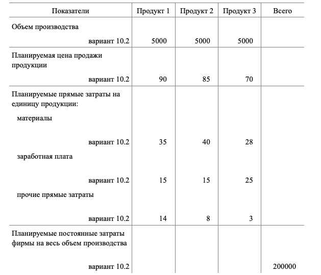Анализ прибыльности продуктов (АВС - анализ) Ранжируйте продукты фирмы по их выгодности. Определите вклад каждого продукта в прибыль. Условия задачи по вариантам: Примечание: отчисления в социальные фонды принять по действующим ставкам.