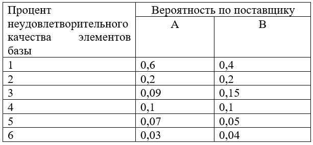 Таблица 1 – Распределение вероятностей неудовлетворительного качества элементов информационной базы по поставщикам