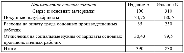 по изделию А – 319 тыс. руб., по изделию Б – 276 тыс. руб.