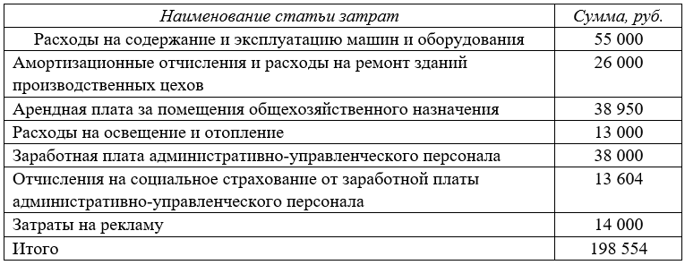 Таблица № 1. Прямые расходы на производство единицы продукции, руб.