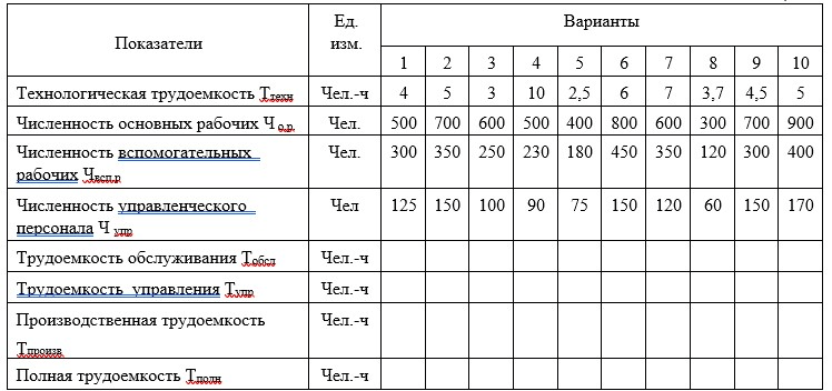 На основе данных о технологической трудоемкости и численности соответствующих категорий промышленно-производственного персонала определить трудоемкость обслуживания, производственную трудоемкость, трудоемкость управления, полную трудоемкость.