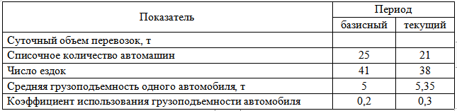 «Рассчитайте влияние факторов: количества машин (А), числа ездок (z), средней грузоподъемности автомашины (q) и коэффициента использования грузоподъемности ( ) на суточный объем перевозок в тоннах (Q) по автотранспортному предприятию. Таблица 1 Исходные»