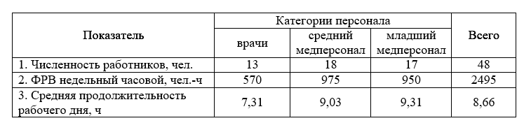 Определите среднюю продолжительность рабочей недели в часах и днях для каждой категории персонала и в целом по больнице, а также среднее количество рабочих дней в рабочей неделе для каждой категории персонала.