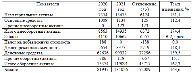 Таблица 6 - Показатели динамики актива баланса ООО Щебень Экспресс за 2020-2021 гг., тыс. руб.