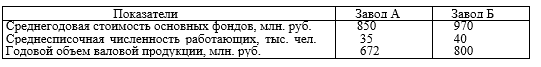 Определить показатели фондоотдачи, фондовооруженности труда и установить, на каком заводе лучше используются основные производственные фонды.