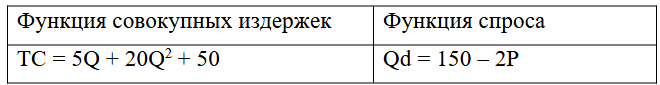 «Фирма работает в условиях совершенной конкуренции. Функция издержек представлена в исходных данных. Определить минимально приемлемую цену в долгосрочный период и соответствующий этой цене объем»