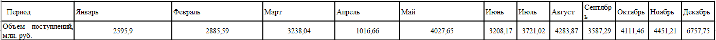 «Имеются данные объема поступлений по налоговым платежам и другим доходам в бюджетную систему РФ по Свердловской области за 1 г. (млн. руб.)»