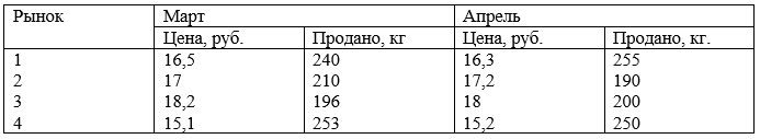 Имеются следующие данные о реализации моркови на рынках города: Определите: индекс цен переменного состава; индекс цен постоянного состава; индекс структурных сдвигов; изменение средней цены под влиянием различных факторов.