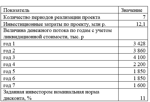 IC сумма инвестиционных затрат (IC=12 100 тыс. руб.)