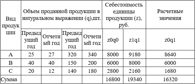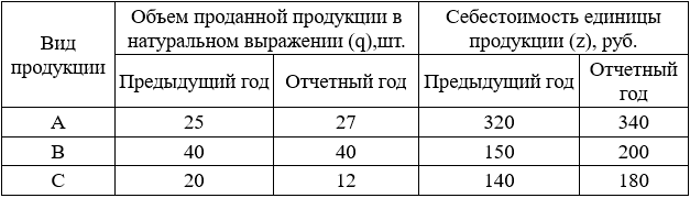 «Используя индексный метод, проанализируйте влияние факторов (объема проданной продукции в натуральном выражении q и себестоимости единицы продукции»