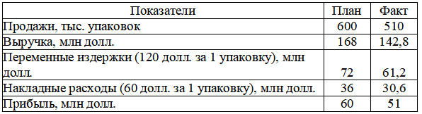 Руководство холдинга, в который входит этот комбинат, запланировало получение им годовой прибыли в 60 млн долларов. Цена, по которой продается тридцатиграммовая упаковка порошка, была утверждена директором комбината на уровне 280 долл. при плане поставок в США 600 тыс. упаковок за год.