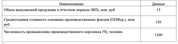 На основании данных, приведенных в таблице определить показатели эффективности использования основных фондов: