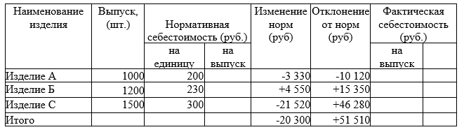 Рассчитать фактическую себестоимость изделий А, Б и С. Сравнить её с нормативной.