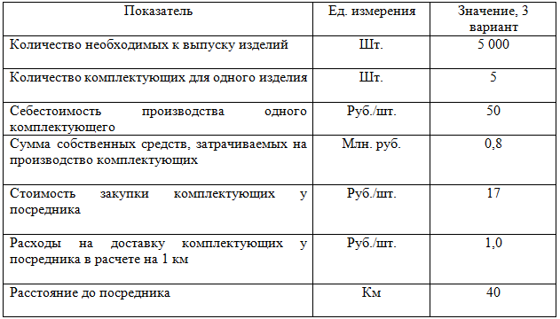 1. При расчете первого варианта необходимо найти производственную мощность собственного производства и определить, сколько необходимо докупить комплектующих у посредника.