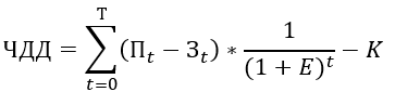 1. Чистый дисконтированный доход (ЧДД) определяется как превышение интегральных результатов над интегральными затратами приведенных к начальному шагу. Величина ЧДД для постоянной нормы дисконта (Е) определяется по формуле: