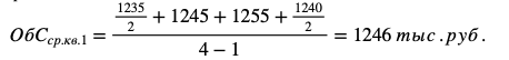 Рассчитаем среднеквартальные остатки оборотных средств: