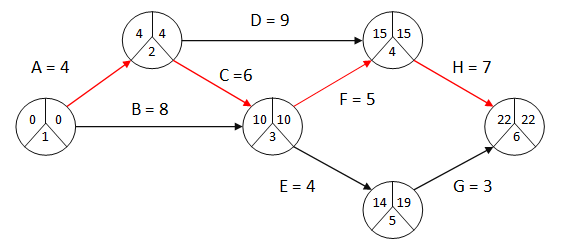 Критический путь A C F H . Т0 = Tкр. = 4 + 6 + 5 + 7 = 22 суток.