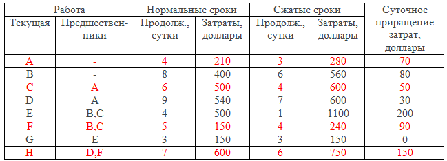 «Проект задан в табличной форме. Известны затраты на выполнение работ в нормальные и сжатые сроки. Построить линию минимальных прямых затрат проекта.»