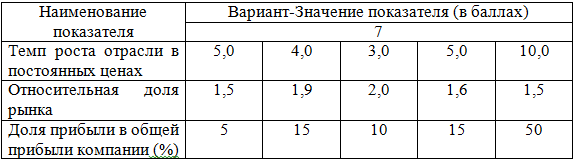 «Провести анализ производственного подразделения компании с использованием матрицы «рост-доля», используя следующие данные (таблица 1).»