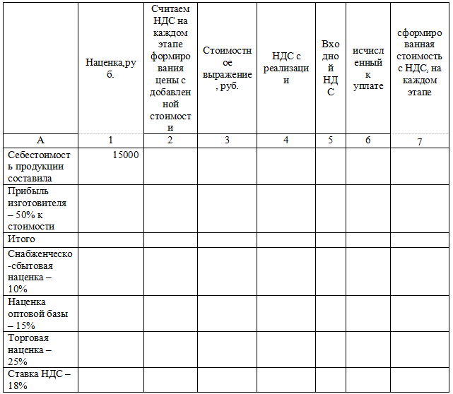 «Рассчитать неизвестные показатели Себестоимость продукции составила Прибыль изготовителя – 50% к стоимости Итого Снабженческо-сбытовая наценка – 10%»