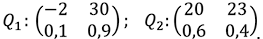Рассмотрим два проекта, характеризуемые некоррелированными дискретными случайными величинами . Найдем риск совместного осуществления этих проектов при условии, что инвестиции делятся между этими проектами в отношении 1 к 3: = 𝑄2.