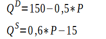До введения дотации 150 0,5P = 0,6P-15 P = 150; Q =75;
