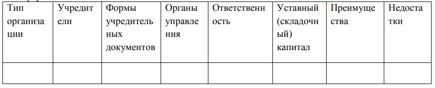 Составьте таблицу основных типов хозяйственных организаций по следующей форме
