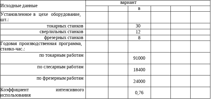 Требуется решить задачу: Определите коэффициент интегрального использования оборудования. Данные для расчета приведены в таблице.