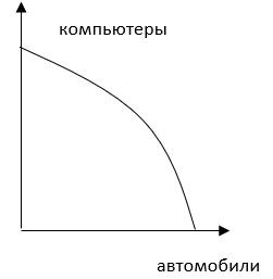 В стране производятся компьютеры и автомобили. Исходная КПВ представлена на графике.