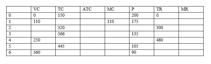 В таблице представлена информация об издержках и доходах фирмы. Заполните таблицу и укажите, при каких значениях Р и Q прибыль фирмы максимальна, какую прибыль получает фирма в условиях равновесия, на каком типе рынка функционирует фирма.