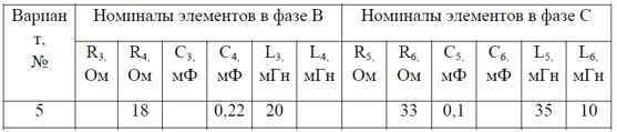 1) Определить сопротивления и проводимости фаз; 2) Определить токи в фазах (их значения и фактическое положительное направление) при помощи комплексного метода; 3) Определить ток в нейтральном проводе;