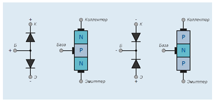 Этот полупроводниковый триод состоит из 3 частей эмиттера, коллектора и базы. Таким образом, ключевыми элементами биполярного транзистора являются два p-n-перехода, а не один, как в полевых. Эмиттер исполняет функцию генератора носителей заряда, которые формируют рабочий ток, стек...