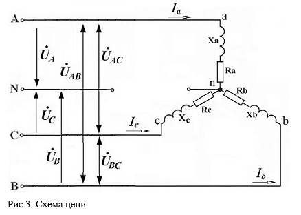 «Дано: UЛ = 380 В; Za = Zb = Zc = Z = (72 + j54) Ом. Режимы работы: симметричный; обрыв фазы A: короткое замыкание фазы B. Рассчитать фазные и линейные токи цепи.»