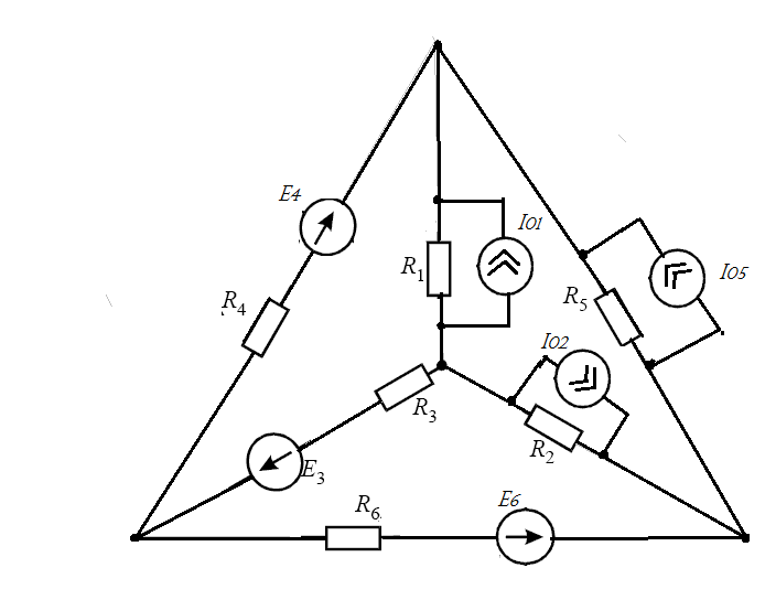 Примечание: Источники тока Iо включите параллельно резистору в соответствующей ветви.
