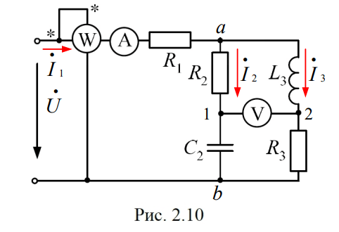 Для электрической цепи, схема которой представлена на рисунке 2.10, известны параметры элементов цепи (табл. 2). К зажимам электрической цепи приложено синусоидальное напряжение