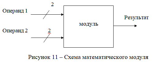 На рисунке 11 приведена схема математического модуля, выполняющего простую функцию в двоичной системе счисления над двухразрядными числами. Разработайте схему на логических элементах, выполняющих действия в соответствии с таблицей 20. Разрядность результата определить по максимальному результату.