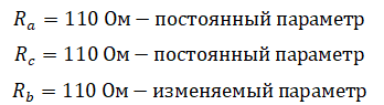 С помощью изменяемых параметров установить указанную ниже величину потребляемой мощности (активная мощность, потребляемая одной фазой) как можно точнее и проверить работу схемы расчетом.