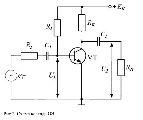 Определить параметры усилительного каскада: входное сопротивление, выходное сопротивление, коэффициенты усиления по напряжению, по току, по мощности, верхнюю и нижнюю граничную чаcтот .
