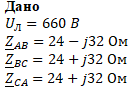 Потребитель электроэнергии, фазы которого имеют комплексные сопротивления, соединены в трёхфазную электрическую цепь треугольником, питается симметричной системой линейных напряжений.