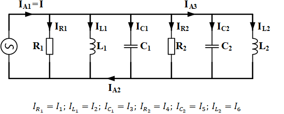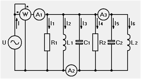 Представлена схема параллельного соединения элементов, подключенная к источнику переменного тока (рис. 1).