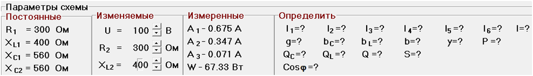 Установим с помощью изменяемых параметров потребляемую цепью мощность: