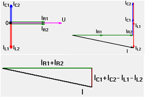 Вторая – сложение векторов, а третья показывает результирующий треугольник.