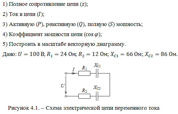 Для однофазной электрической, цепи переменного тока (рис. 4.1) рассчитать: