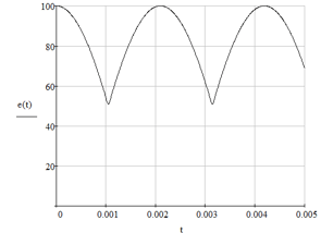 Используем готовые формулы для кривой напряжения, полученной с помощью трёхфазного выпрямителя со средней точкой.