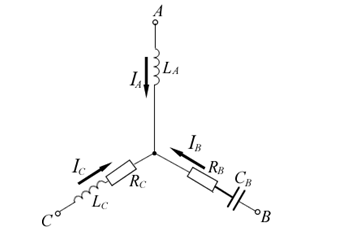 1. Составляем расчетную схему по заданным комплексным значениям сопротивлений в фазах: