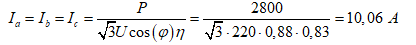 Трехфазный асинхронный двигатель подключен к трехфазной сети с напряжением U. Двигатель имеет номинальную мощность Рном при коэффициенте мощности и коэффициенте полезного действия
