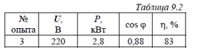 «Трехфазный асинхронный двигатель подключен к трехфазной сети с напряжением U. Двигатель имеет номинальную мощность Рном при коэффициенте мощности т коэффициенте полезного действия (табл.9.2).»