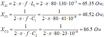 1. Рассчитываем сопротивления реактивных элементов на заданной частоте:
