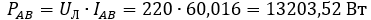 РAВ, РBС, РCА– мощности, потребляемые каждой фазой (группой ламп);
