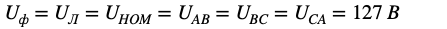 2) определяем фазные напряжения (при соединении треугольником фазные и линейные напряжения равны):